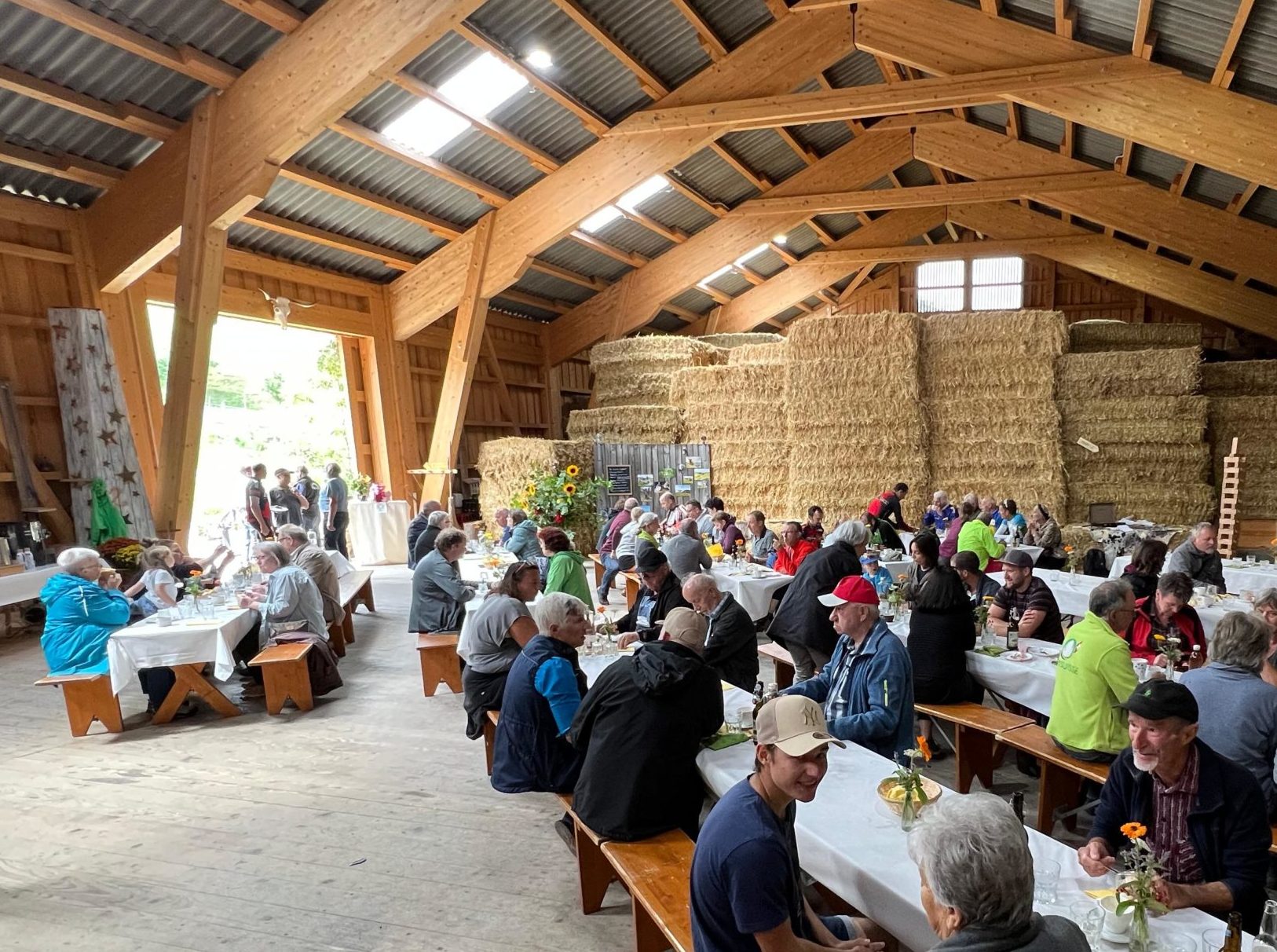 Wir feiern auf der Heubühne drinnen. Wir sind sicher am Trockenen und dennoch an der frischen Luft. Die Kleidung soll deswegen den Temperaturen entsprechend gewählt werden.